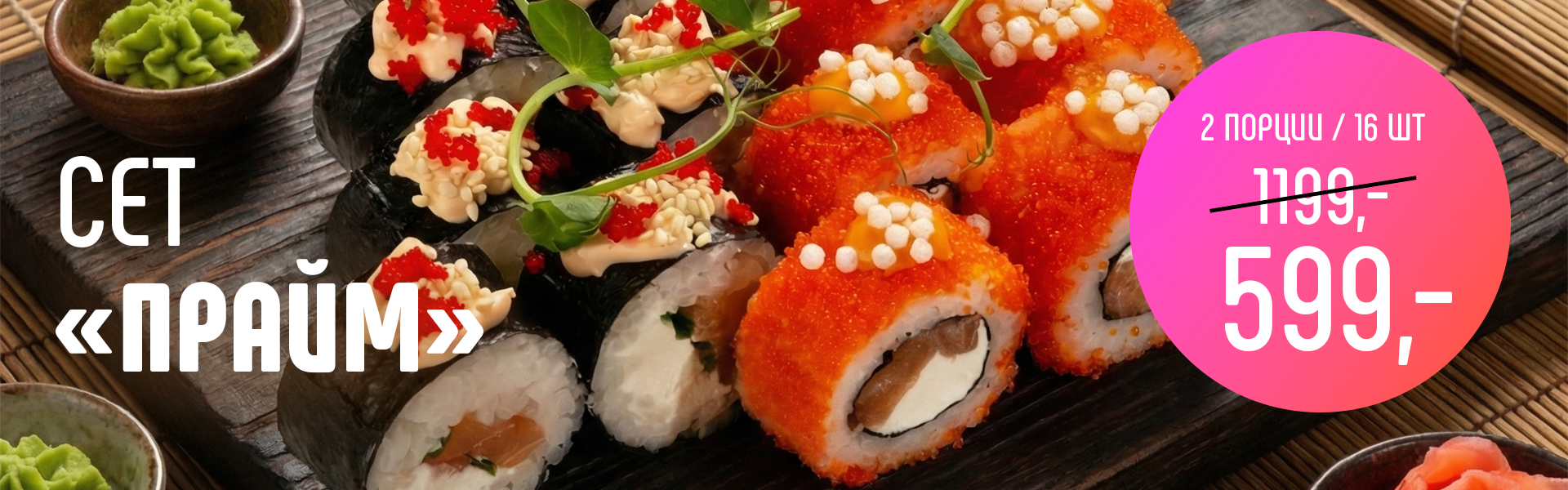 Более 200 блюд – суши, роллы, пицца, поке, WOK-лапша, супы и многое другое.